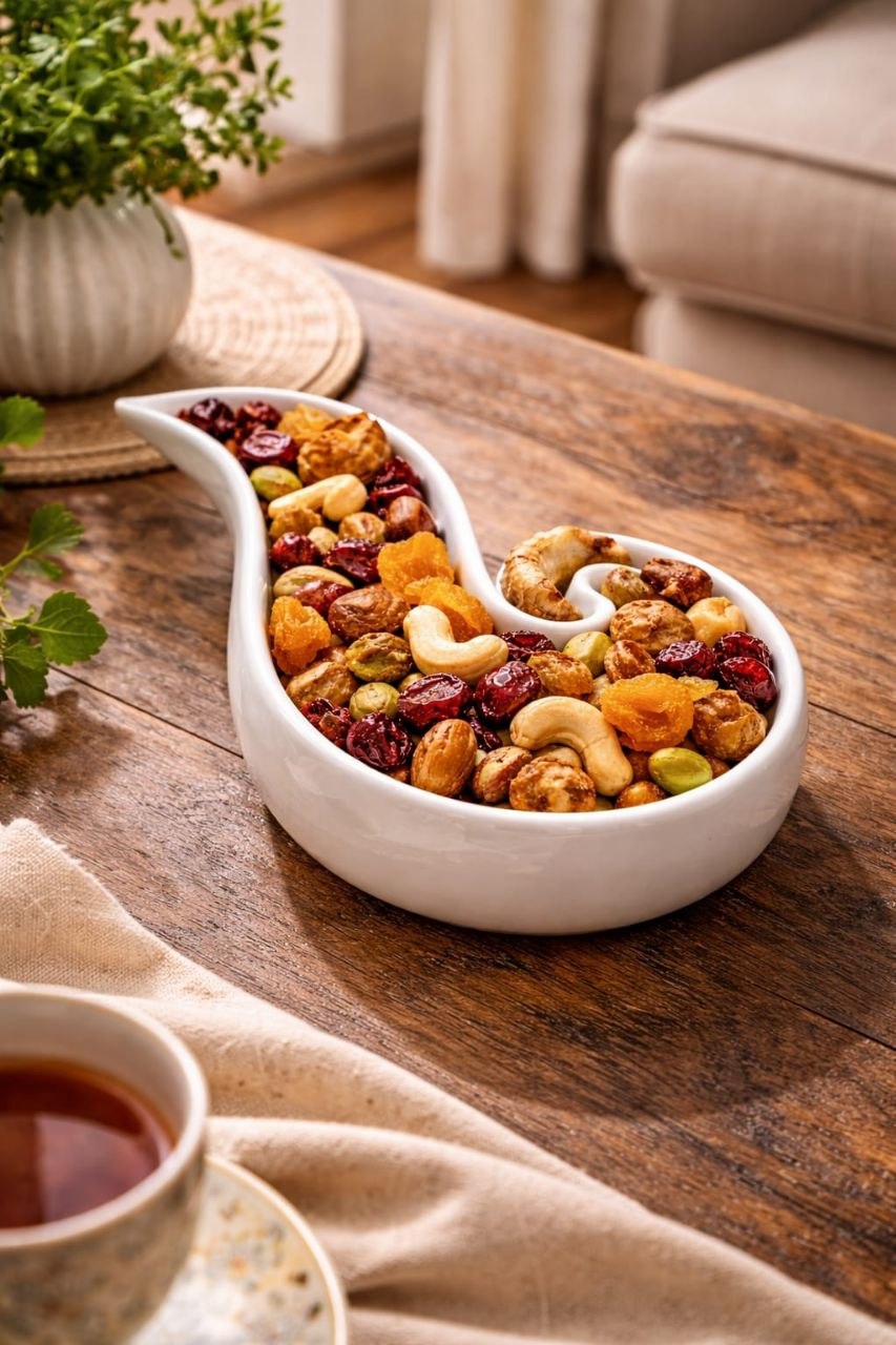 Serve your favorites with elegant flair using this spiral-shaped porcelain serving plate. Designed for stylish presentation, it’s perfect for candy, nuts, fries, sauces, and appetizers—adding a modern, playful touch to any table.