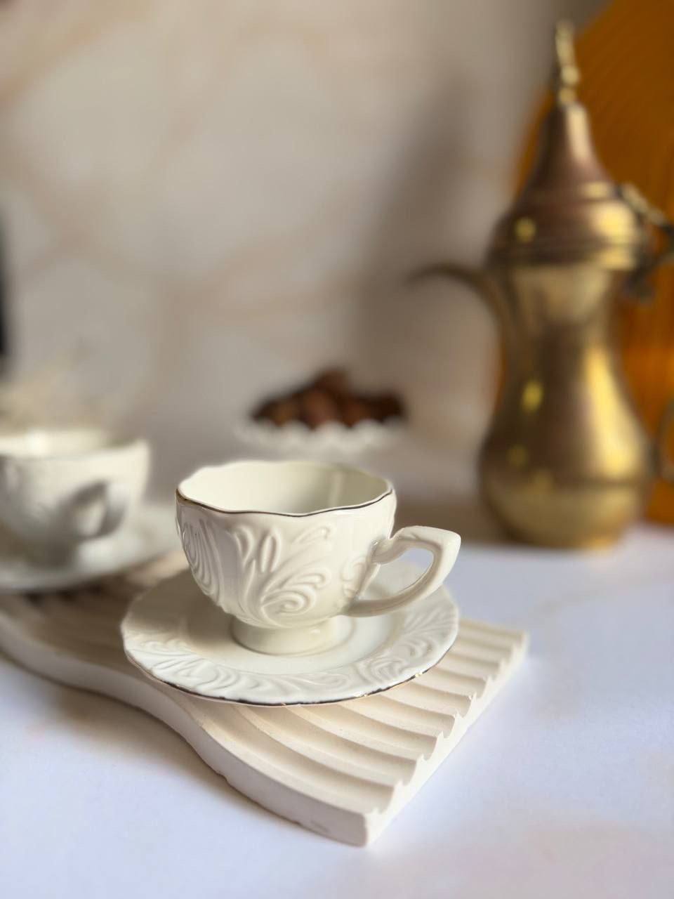 White & Gold Coffee Cup Set – 6 Cups with Saucers (12 Pieces)